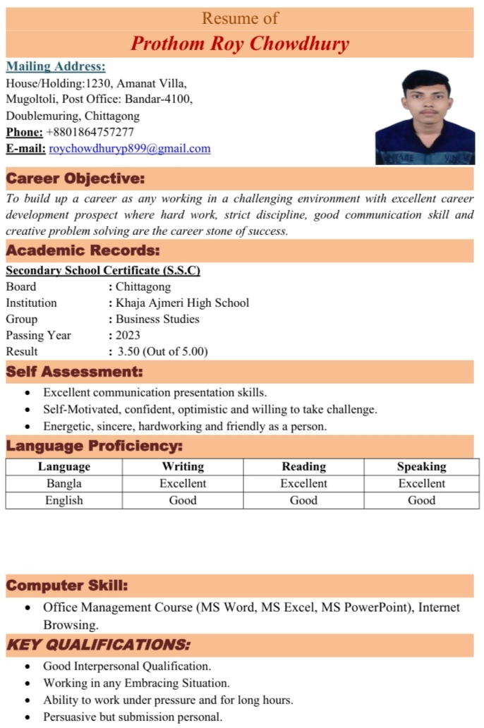 roychowdhuryp899 Computer office management Chattogram ৳3000 / month July 3, 2006 Download CV Invite Shortlist About Candidate Share this post Facebook Twitter LinkedIn Location Education H Hsc 2025 2023-24 Omar gani mes college Work & Experience C Computer office management 01/07/2023 - 01/04/2025 Super cc Portfolio Be the first to review “roychowdhuryp899” Cancel reply Your Rating for this listing Your Rating Your Name Your Email Save my name, email, and website in this browser for the next time I comment. Your Comment