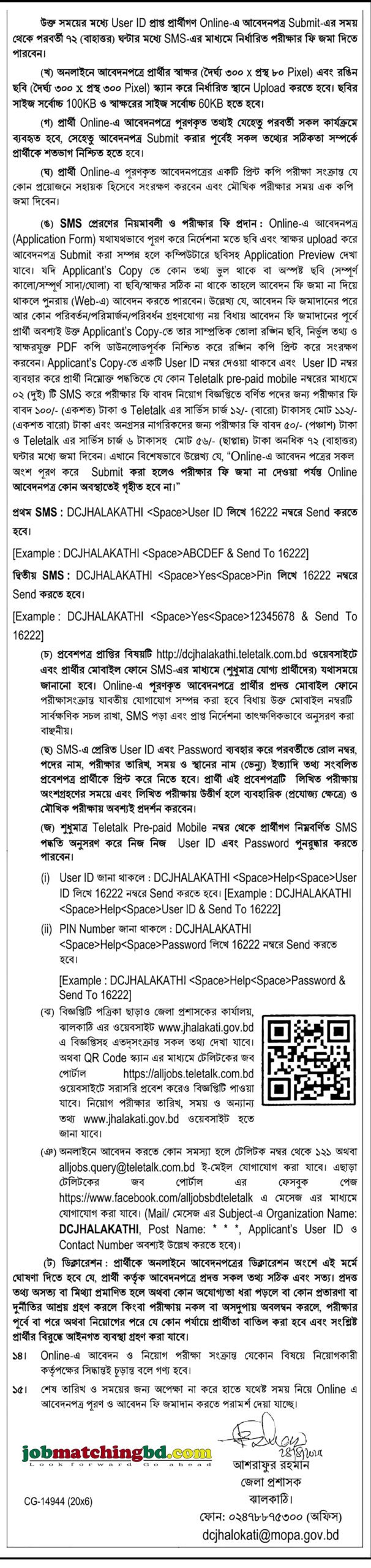 আবেদন প্রক্রিয়া: আগ্রহী প্রার্থীদের http://dcjhalakathi.teletalk.com.bd ওয়েবসাইটের মাধ্যমে আবেদন করতে হবে।