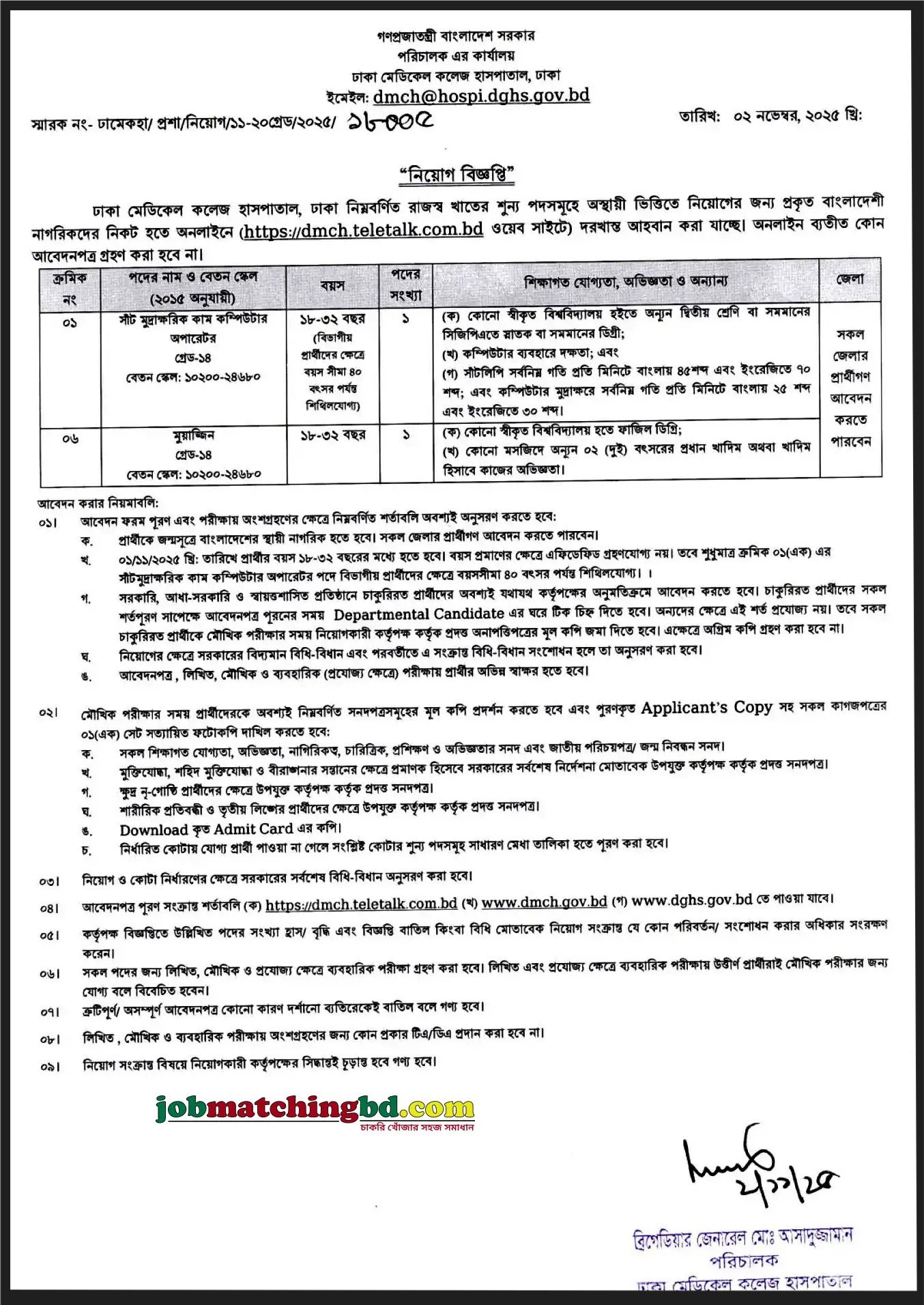 ঢাকা মেডিকেল কলেজ হাসপাতাল নিয়োগ ২০২৫ – Dhaka Medical College Hospital – DMCH Job Circular 2025 ( সরকারি চাকরি নিয়োগ ২০২৫)