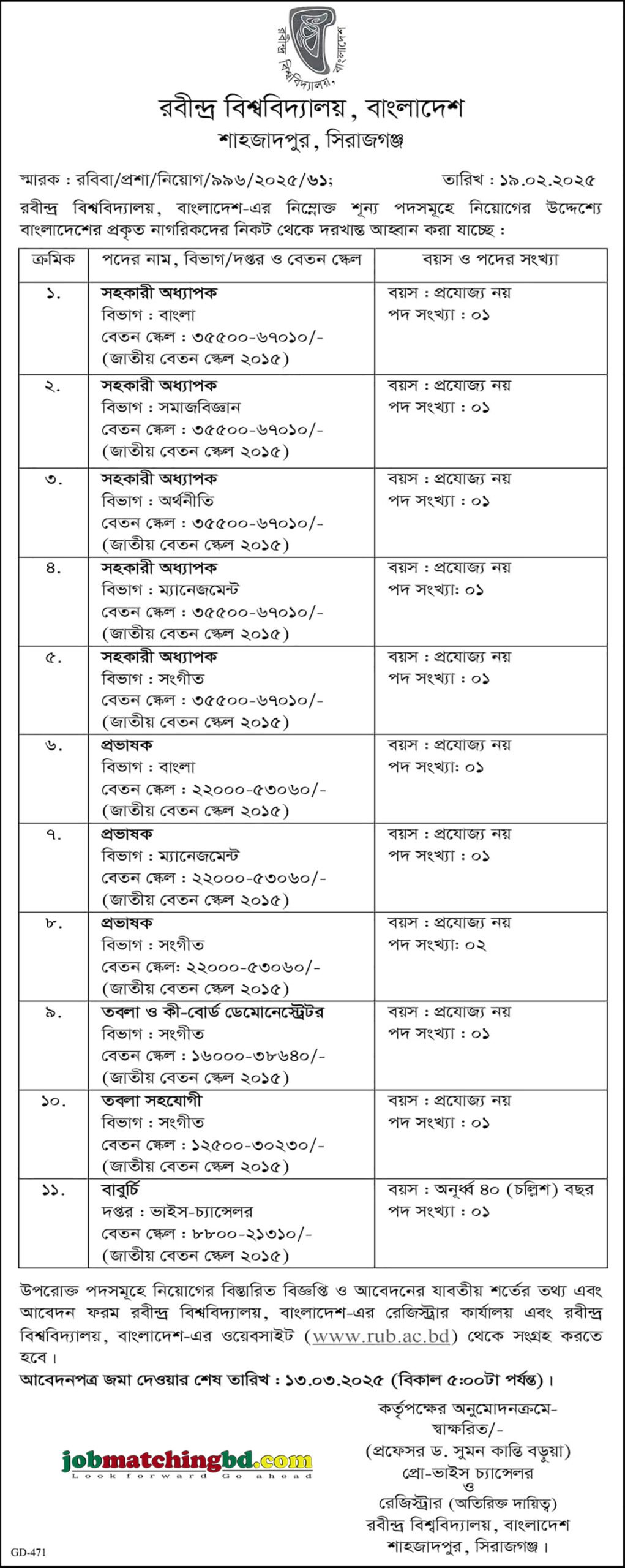 রবীন্দ্র বিশ্ববিদ্যালয় Rabindra University Job Circular 2025 চাকুরির বিজ্ঞপ্তিঃ