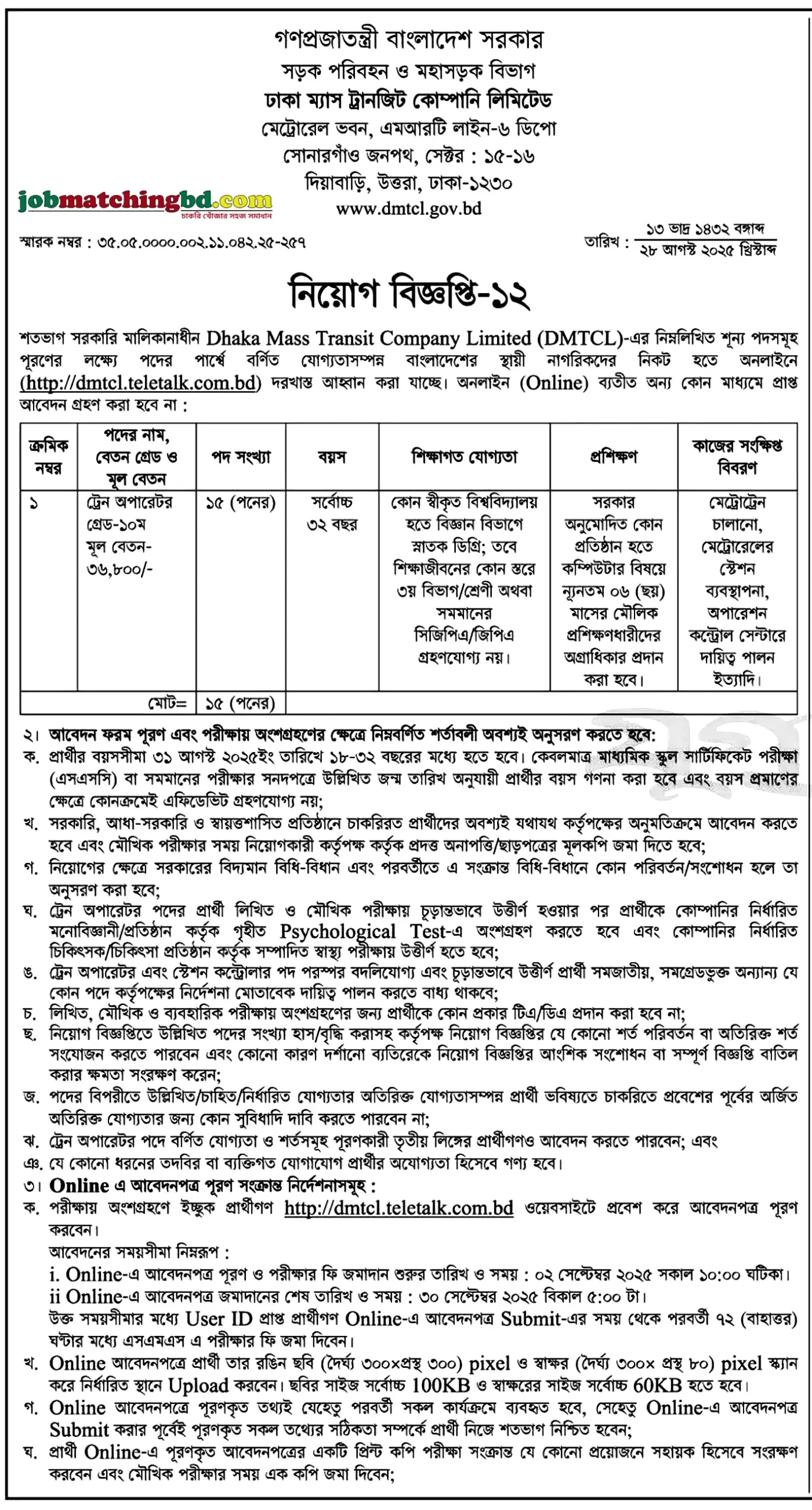 jobmatchingbd.com brings you the latest Bangladesh Government Job Circular and updates on new Govt job circular 2025. Explore Govt jobs 2025, পুলিশ জব, সরকারি চাকরি নিয়োগ ২০২৫, Government Driving Job in Bangladesh, and more. Stay updated with Government job exam alerts, preparation tips, and সরকারি চাকরির খবর ২০২৫, DMTCL Job Circular, ঢাকা ম্যাস ট্রানজিট কোম্পানি লিমিটেড, at jobmatchingbd.com.