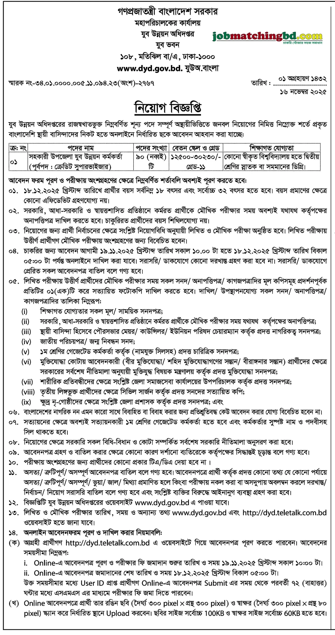 যুব উন্নয়ন অধিদপ্তর Department of Youth Development – DYD Circular 2025 চাকুরির বিজ্ঞপ্তিঃ