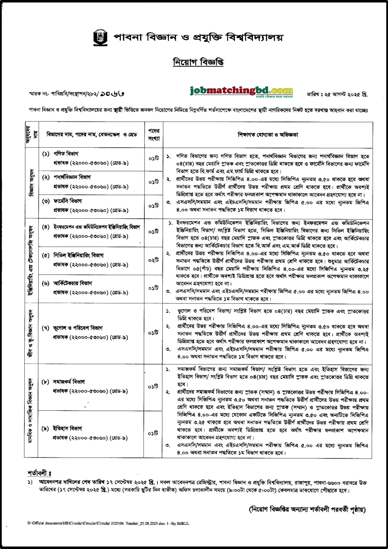পাবনা বিজ্ঞান ও প্রযুক্তি বিশ্ববিদ্যালয় নিয়োগ বিজ্ঞপ্তি ২০২৫ – PUST Job Circular (পাবনা বিজ্ঞান ও প্রযুক্তি বিশ্ববিদ্যালয় নিয়োগ বিজ্ঞপ্তি ২০২৫)